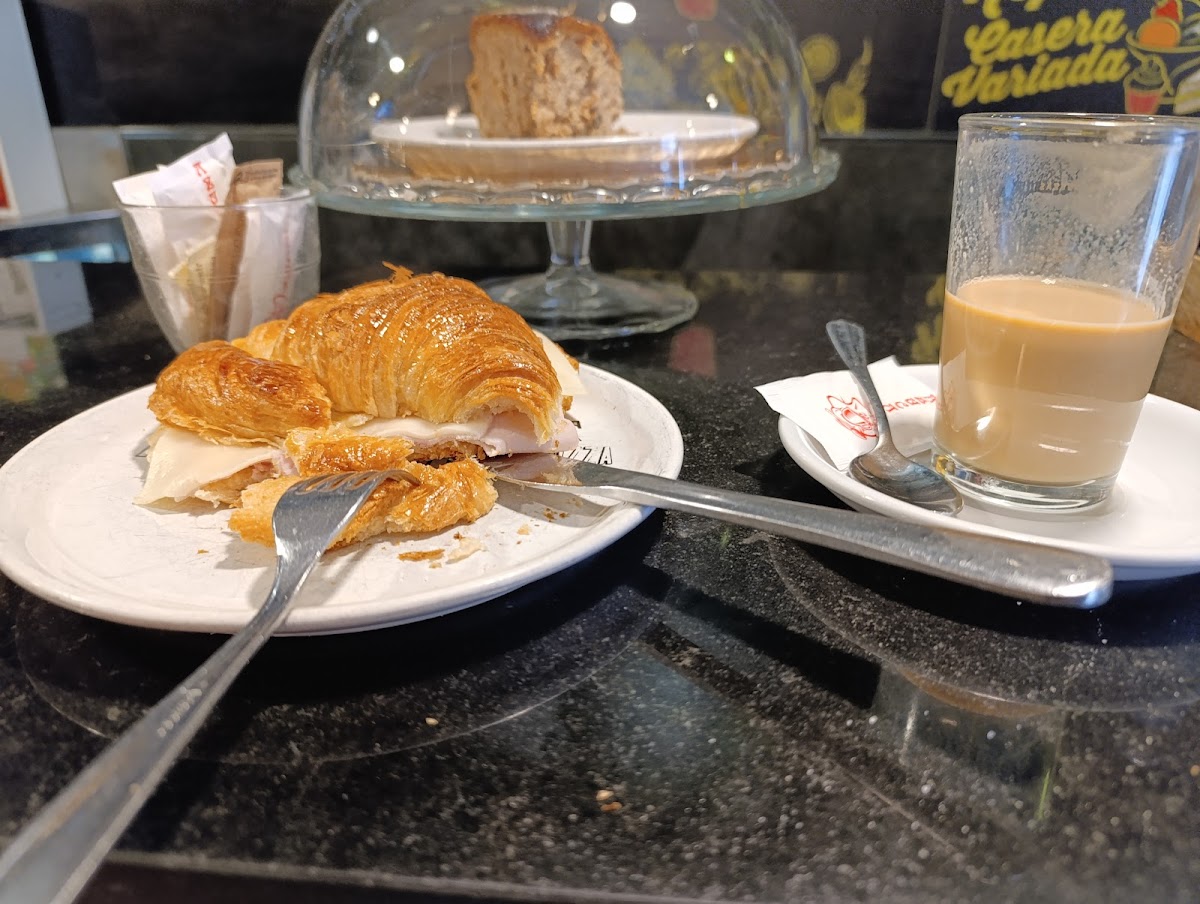 Cafe Castillo sits along Calle del Gral. Ricardos in the Carabanchel neighborhood, offering a straightforward spot for a relaxed morning coffee. This is the kind of place where locals drop in for a calm start to their day, often choosing a simple breakfast like coffee with milk paired with a croissant, sometimes filled with familiar deli ingredients such as jamón de york and cheese.